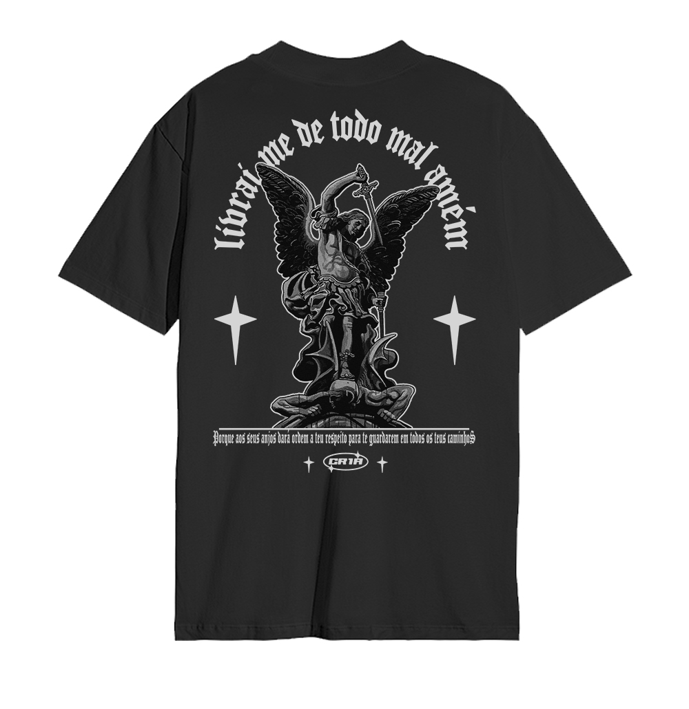 Modelagem streetwear com caimento mais largo e comprimento levemente estendido.